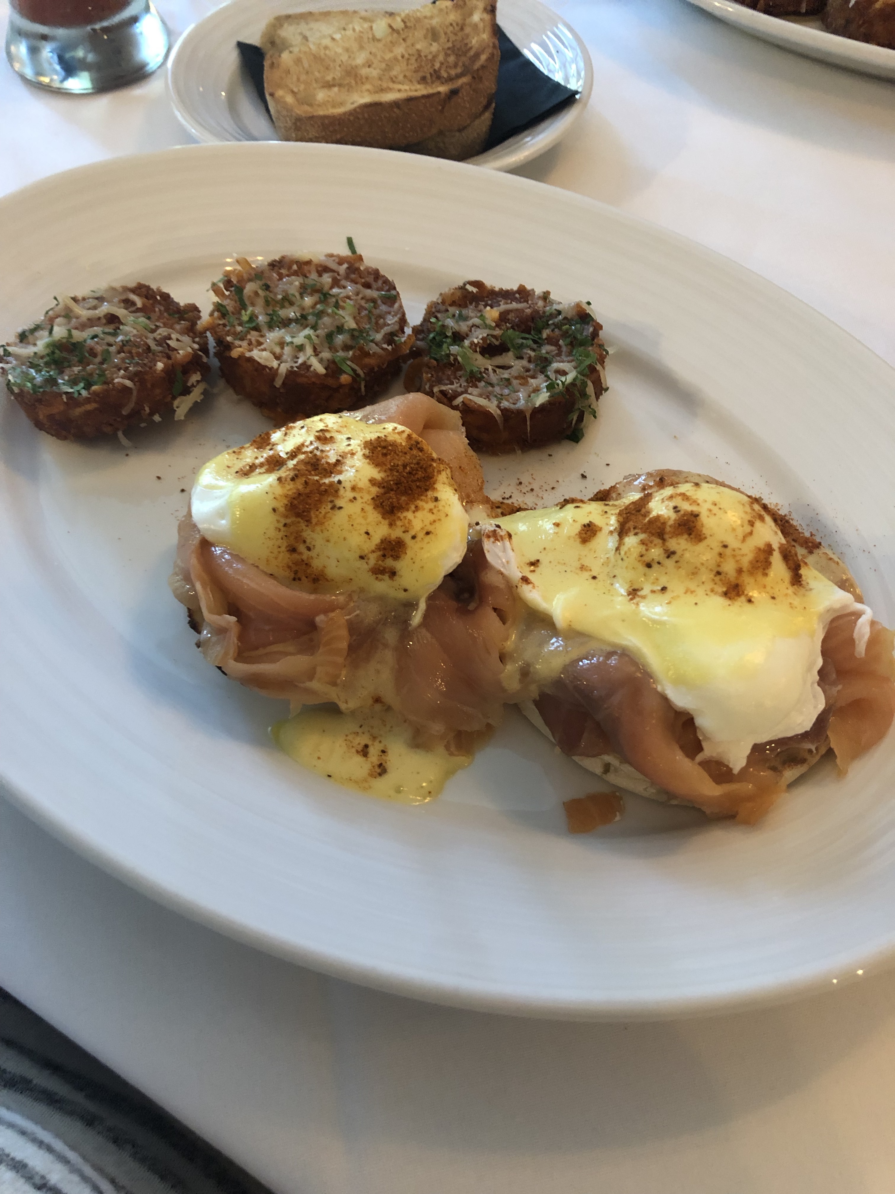 • Smoked Salmon Benedict: House smoked salmon over an English muffin. I could have used a little more hollandaise sauce but that’s okay. My biggest negative with the entree was the hash browns. It seemed as though it was simply shredded potatoes that were baked in a muffin tin…but over baked. For Dessert: